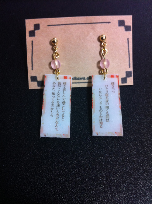 新作は、風鈴のピアスと百人一首とかのピアスでした。