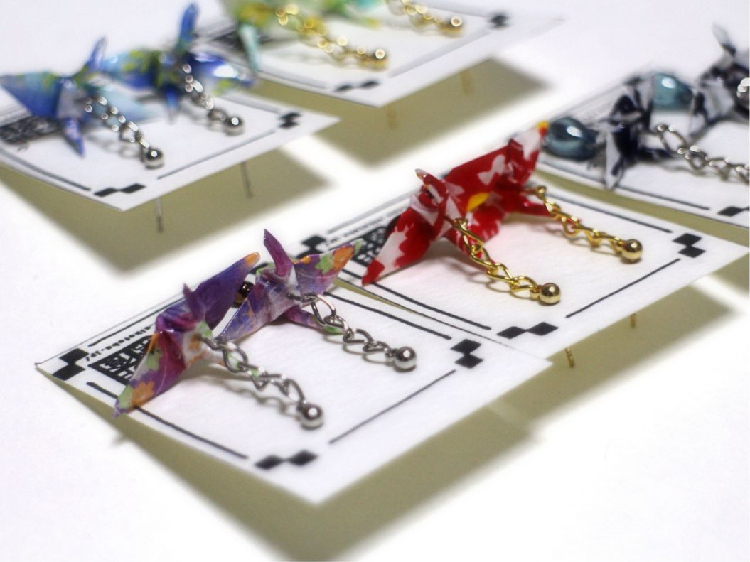 メインは折り鶴のピアス。